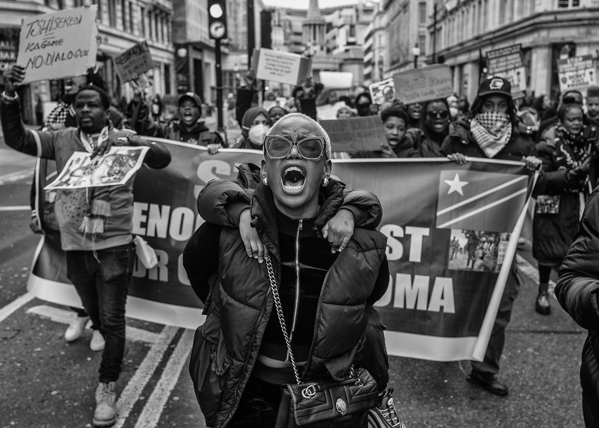 08 FEB 2025 London / UK. Congolese protesters marched through central London to highlight the deteriorating situation in Goma, Democratic Republic of Congo (DRC), which has reached a critical level due to escalating violence. Reports indicate that Rwanda-backed M23 rebels have seized control of Goma and are advancing toward key towns, including Nyabibwe, a critical mining area between Goma and Bukavu.The conflict has triggered a severe humanitarian crisis. Hospitals in Goma are overwhelmed, struggling to manage the influx of casualties. Since the assault began on January 26, 2025, over 2,900 people have died, and around 700,000 have been displaced.Alamy Live News / Aubrey Fagon